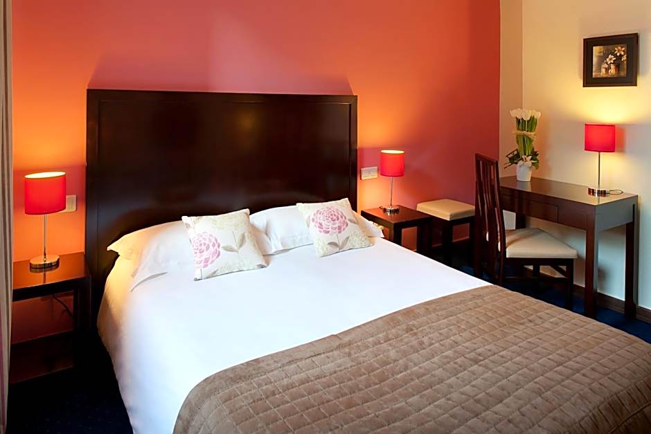 An LCD TV with satellite channels and a private bathroom with a hairdryer feature in this larger room.